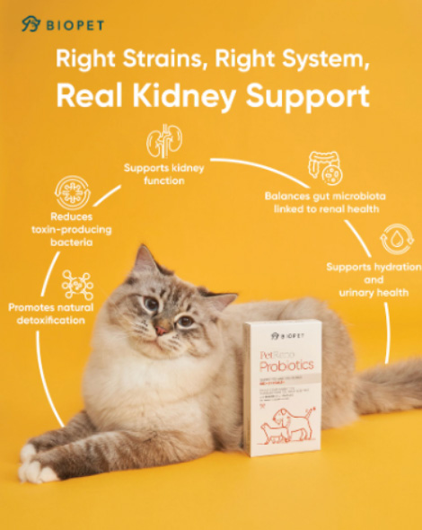 จาก ประสบการณ์ตรวจจุลินทรีย์ลำไส้สุนัข–แมวกว่าในไทยจำนวนมากของ BioPet เราเห็นชัดเจนว่า “แมวและสุนัขที่มีความเสี่ยงไตมักมีจุลินทรีย์บางสายพันธุ์ต่ำกว่าปกติ” ซึ่งสอดคล้องกับผลวิจัยสากลในสัตว์เลี้ยงและงานศึกษาในสัตว์ทดลอง